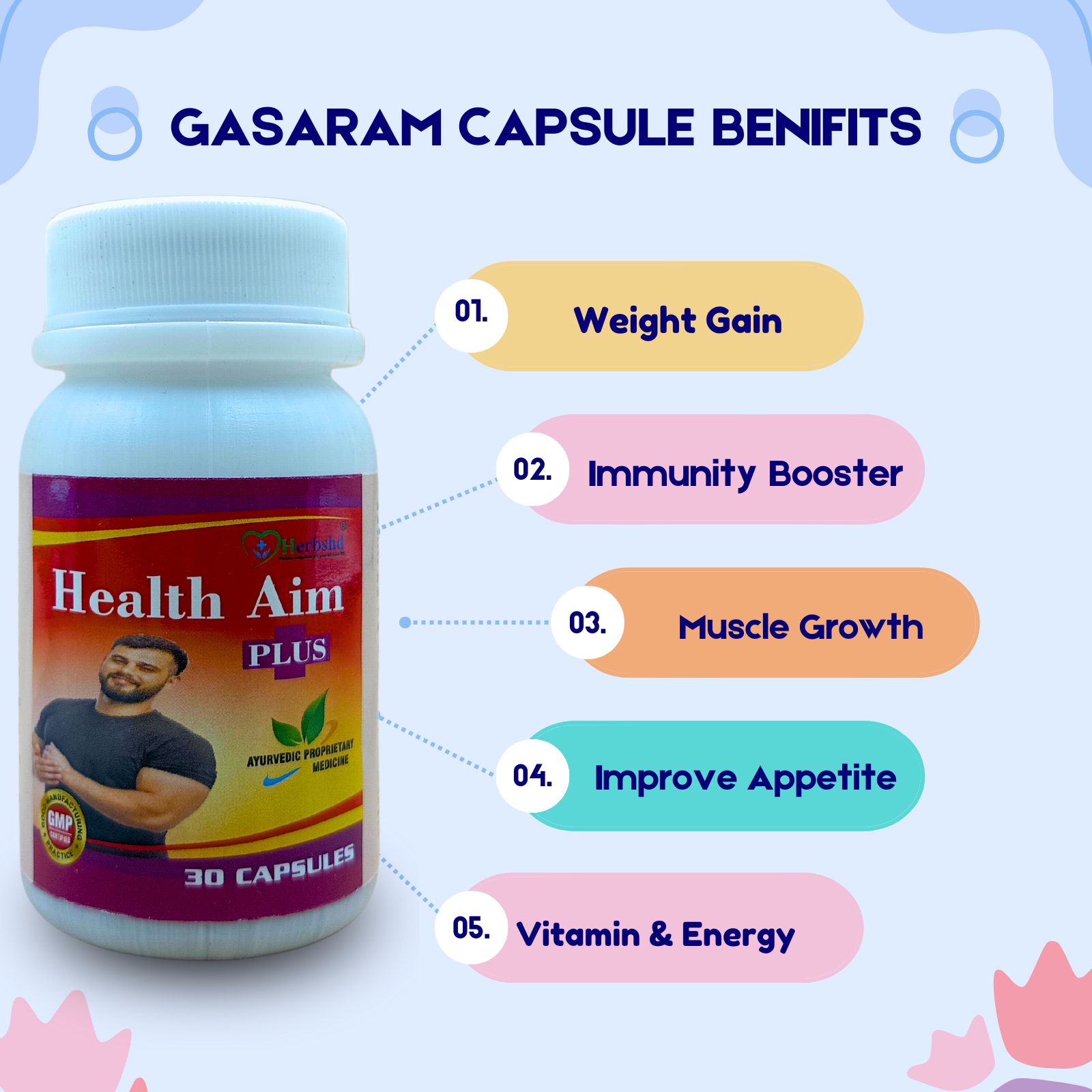 weight gainer Health Aim Plus Capsule & Gasaram Capsule for वजन बढ़ाता है, increases immunity, body building, removes acidity, relieves nausea, relieves constipation, improves food taste