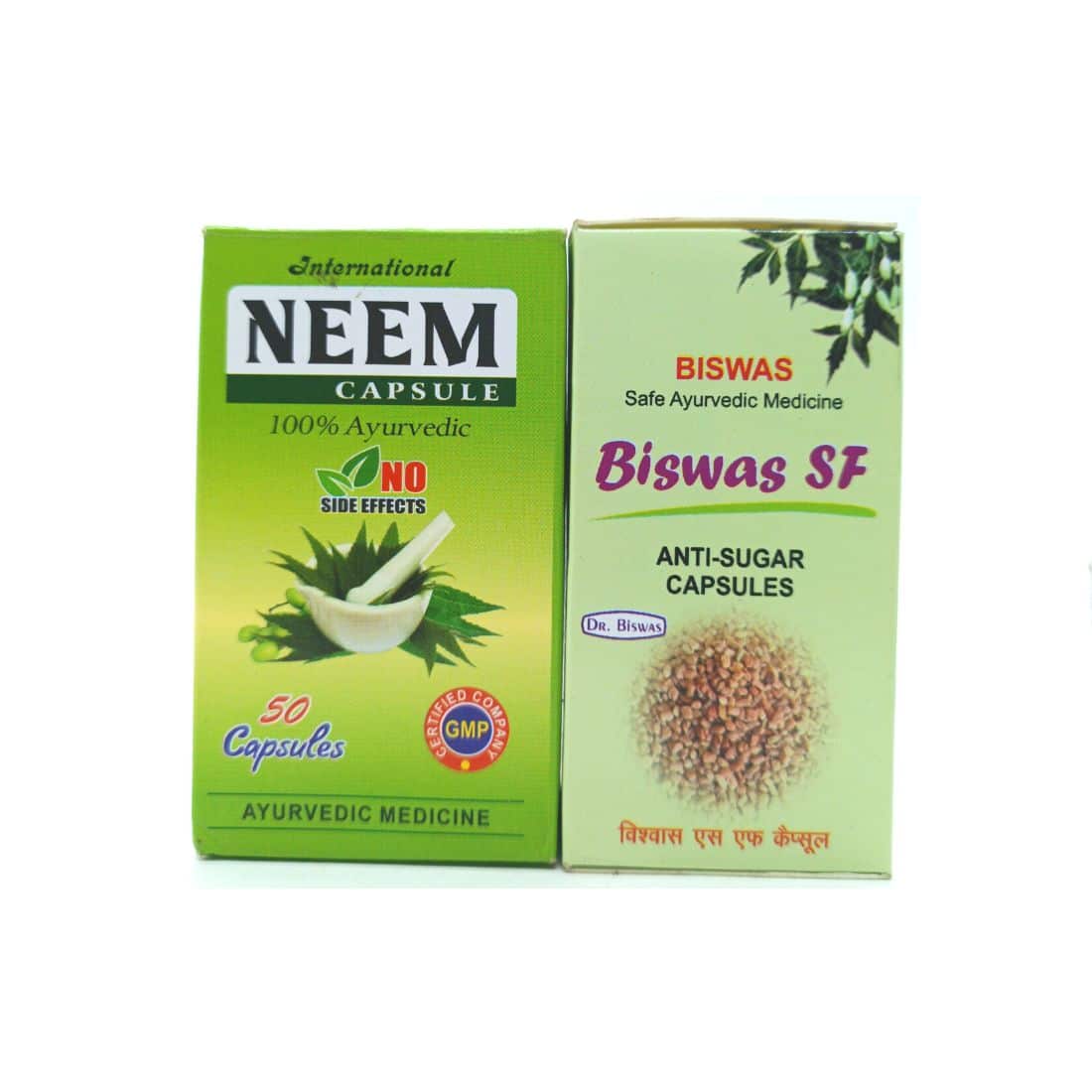 Ayurvedic Sugar Relief Suga RX Combo This helps us to control our sugar in a completely natural way and also to maintain our body and health. D-Protitas Sugar Free Powder is a nutritional Supplement of proteins, essential vitamins and minerals. Biswas SF Capsules Diabetes insipidus & Urinary works on all these diseases. Neem Capsule helps damage skin, Worm killer. Karela Juice good for liver and healthy skin.
