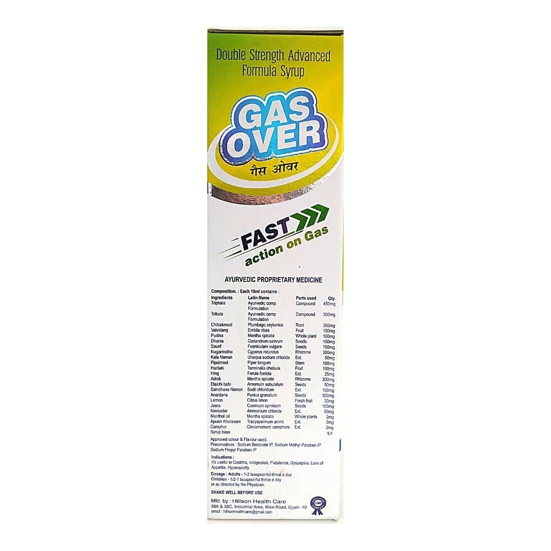 In Acidity Gas Over Syrup relieves excessive acidity in your stomach which prevents heartburn and indigestion. In Stomach ulcers Stomach ulcers are painful sores that develop in the inner lining of the stomach or gut.