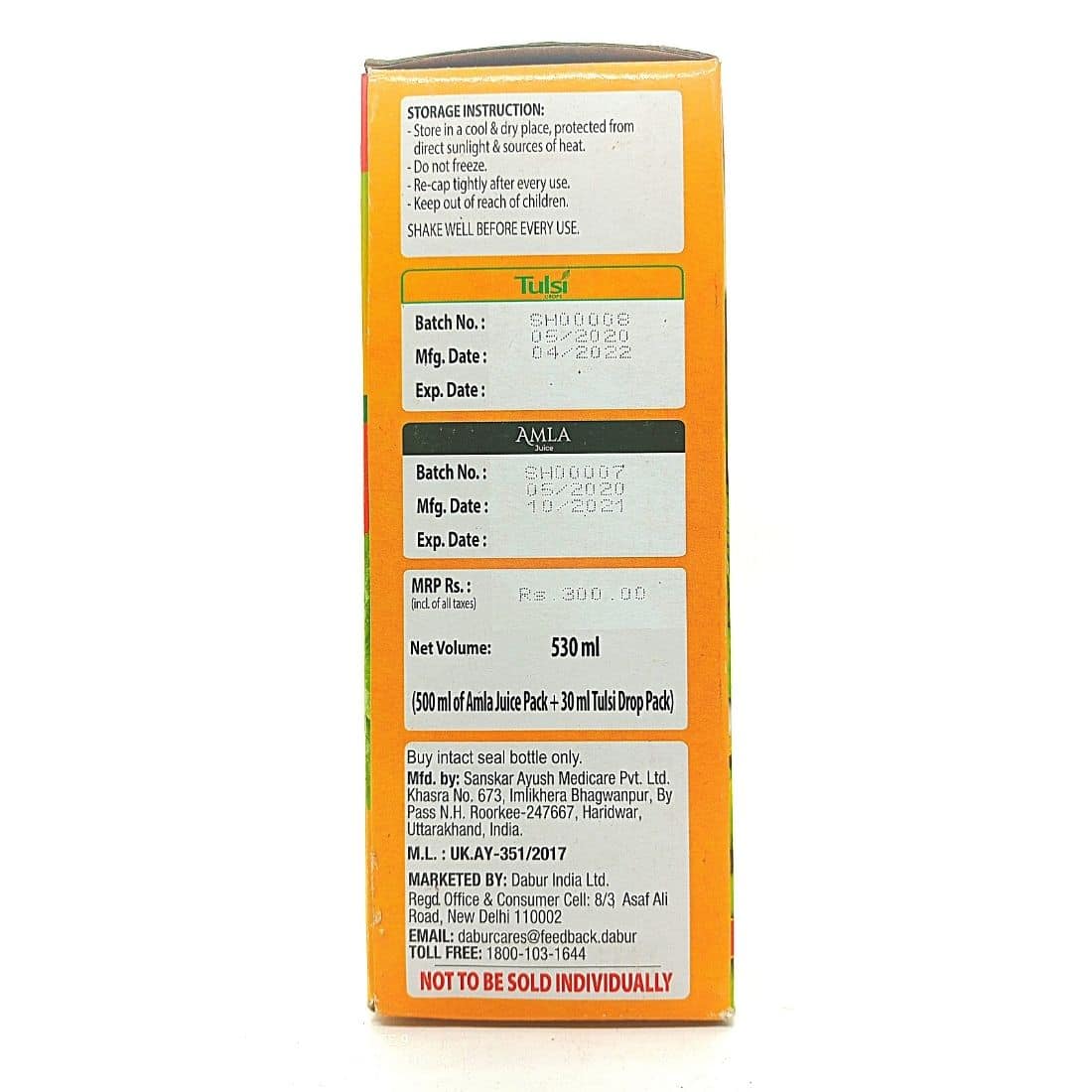 Dabur Amla Juice is good for liver health and aids in improving liver and digestive functions, countering inflammation and protecting against effects of free radicals. Scientific studies have exhibited that it also helps in lowering cholesterol. Dabur Tulsi Drops has antioxidant properties which help boost immunity. and Good For Immunity, Builds Respiratory Health, Relief Form Cough And Cold, Immunity Booster, Builds immunity.