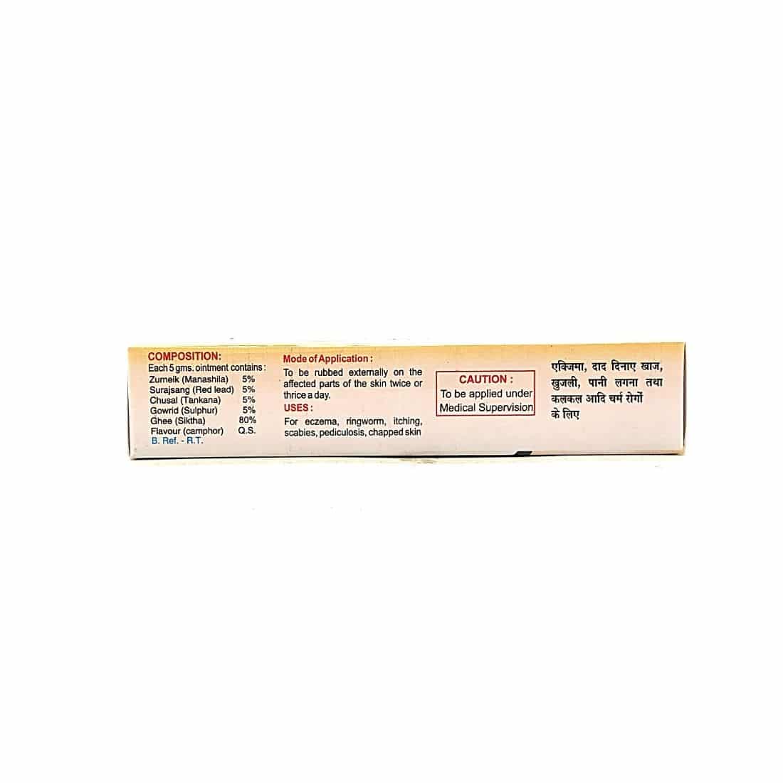 Put the ointment externally on the effected part of the skin and rub three to four times daily till the lesion is disappervision